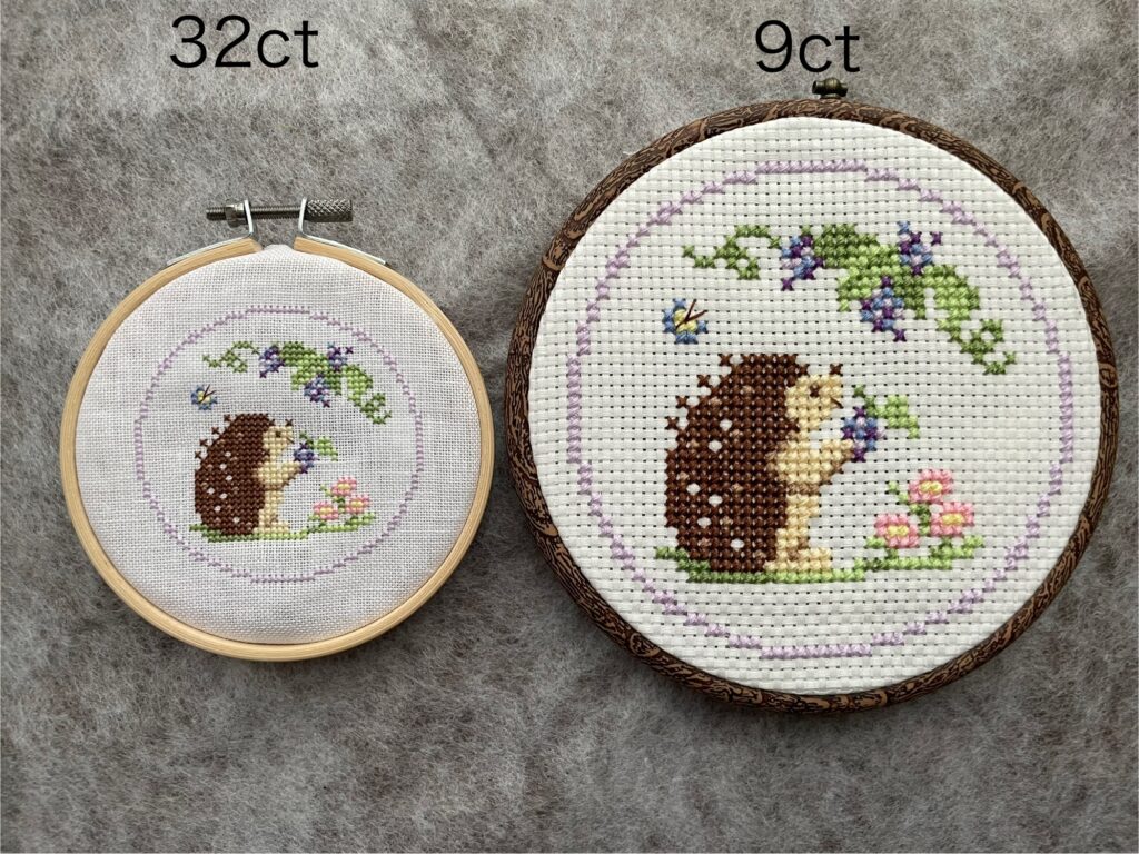 32ct(16ctと同じ仕上がりサイズ)と9ctのサイズの違いです。